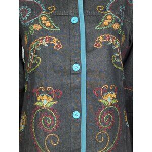 Denim & Co Vintage Embroidered Denim Jacket Pants Set Small QVC NEW