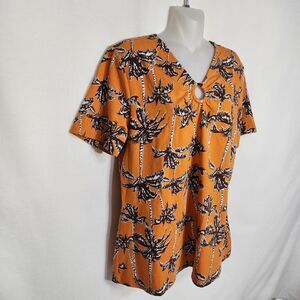 Denim & Co Women Top Medium Printed Jersey V Neck Short Sleeve Palm Tree A379753