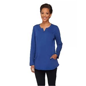 Denim & Co Womens 3X Active Regular French Terry Tunic Seam Detail Purple NWT