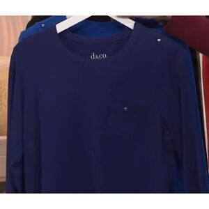 Denim & Co Womens 3X Essentials Round Neck Tee Navy Blue Shoulder Epaulets NWT
