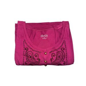 Denim & Co Womens 3X Perfect Jersey 3/4 Sleeve Tunic Cranberry Embroidered NWT