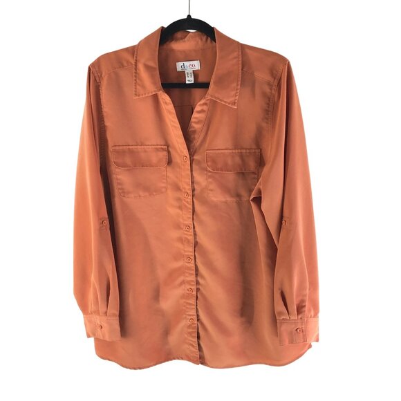 Denim & Co. Womens Button-Up Collared Long Sleeve Shirt L Orange Casual Top