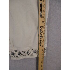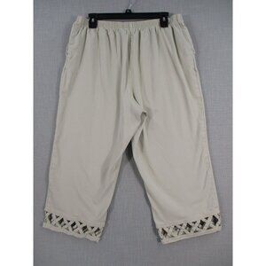 Denim & Co. Womens Capri Pants With Lattice Hem 1X Beige Cotton