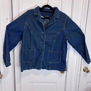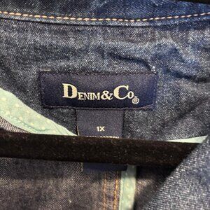 Denim & Co Women’s Denim 3 Button Blazer Jacket Size 1X Stretch Dark Wash