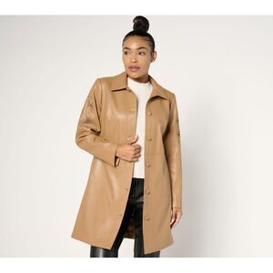 Denim & Co. Women's Jacket Sz M Signature Faux Leather Long w Rose Brown A673208