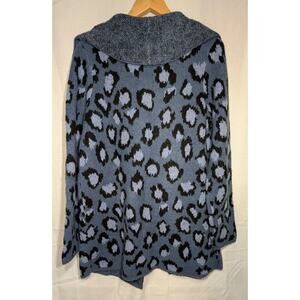 Denim & Co. Womens Jacquard Long-Sleeve Open-Front Cardigan XL Blue Animal Print