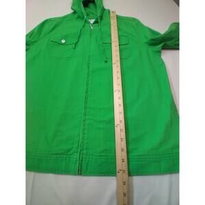 Denim & Co Women's Large Lightweight Jacket Hooded Drawstring Green Zip Frontlp