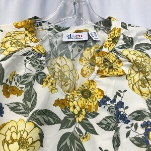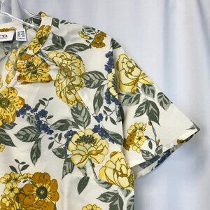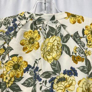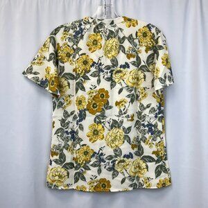Denim & Co. Womens Multicolor Floral Split Neck Short Sleeve Blouse Top Size 2XS