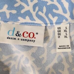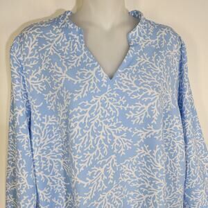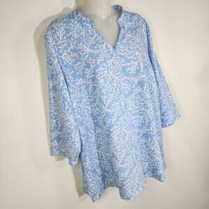 Denim & Co. Womens Printed V-Neck 3/4-Sleeves Tunic Top Chambray Blue Size Large