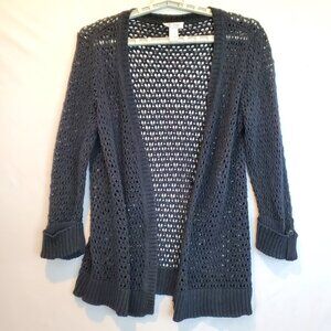 The d&co. black open weave cardigan is in great pre-owned condition. Minimal wear, laundered and ready to ship. Measurements included in description and photos.