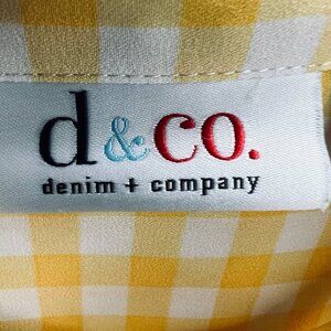 Denim Co Womens Top 1X Yellow White Check Button Front Georgette Shirt Pocket