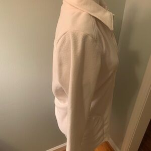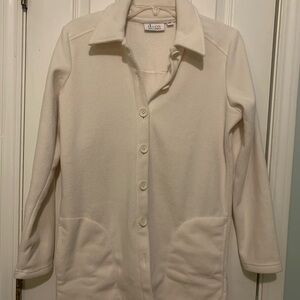Denim & Co. cream long fleece jacket, size XXS..buttons down front..fits larger, check measurements..