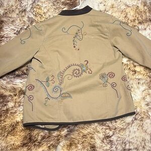 Western vibe jacket. Tan creamy color. Fun pattern wraps around the full jacket.