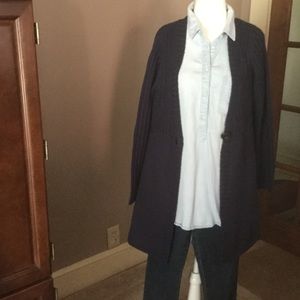 d & co. Small cardigan, small, navy blue, as featured on QVC, one button closure and length is approx. at tips of fingers some piling but in great condition