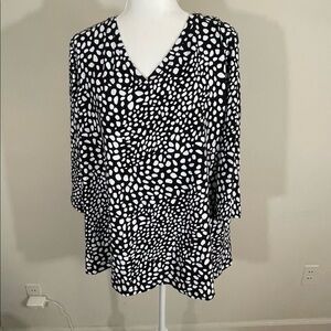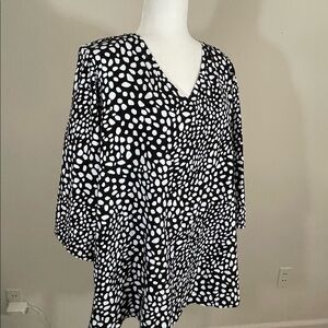 EUC. Knit top tunic style 3/4 sleeves Flairs out gradually. V neck. Super nice abstract dots. No visible flaws. Any questions please ask. Will answer as soon as possible. H