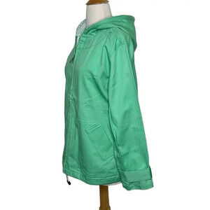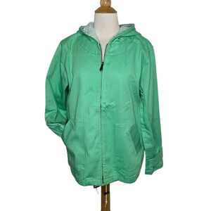 Denim & Co. women's M mint green hooded jacket cotton front zip pockets