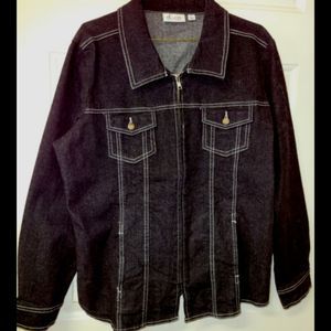 Denim & Co D&Co Black Zip Up Stretch Jean Jacket L Large New w/o tags