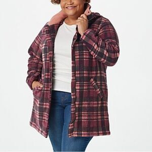 Is it possible to have both in one easy-clean, all-purpose coat? Yes, says Denim & Co.! This just-right jacket is it. A dreamy fleece-bonded-to-sherpa fabrication, a timeless print that just sings to us (and seems to mesh with whatever we've got going on underneath), and plenty of thoughtful extras (snap-off hood, soft and snuggly collar) all partner up to make it mainstay on the coat hook closest to the door for months (and years) to come. From Denim & Co.® Fashions.