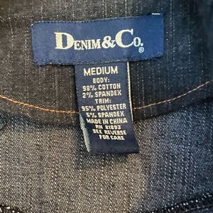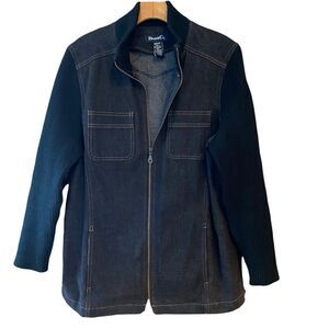 Denim & Co. M Black Denim Sweater Sleeves Full Zip Up Pockets Shacket