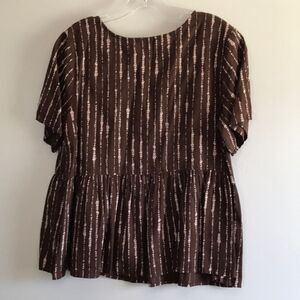 Features: crew neckline, allover printed, peplum silhouette with light shirring at waist, short sleeves