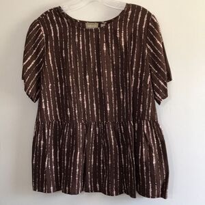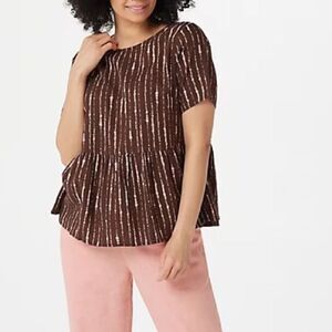 Denim & Co. Naturals Printed Linen Blend Peplum Blouse