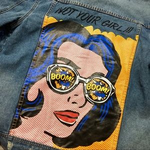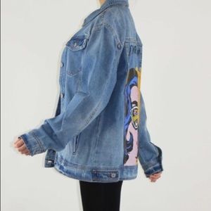 Blue Denim jacket with a comic design on the back. Super fun and unique jacket!