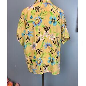 Denim & Company 100% Silk Floral Boxy Button Up Lightweight Tropical Blouse 2X