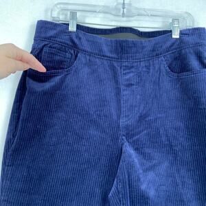 Denim & Company Corduroy Pull On Pants Size M Blue Boot Cut High Rise Stretch