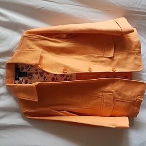 button front, pockets, cuffed sleeve, waffle pattern, lightweight. 23 and 1/2 in Long 17 1/2 in across