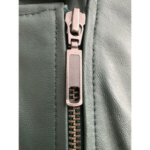 Denim & Company Leather Jacket L Green Asymmetrical Zip Pockets Lined Moto Biker