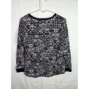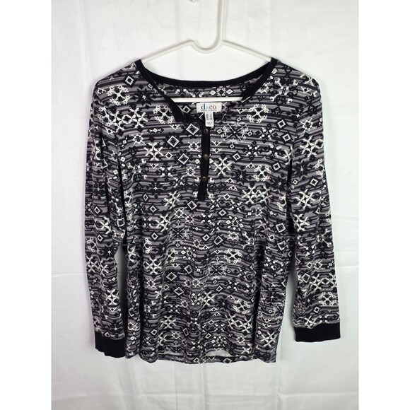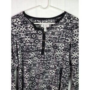 This Denim & Company Women's Small Black/White/Grey Top is a stylish and versatile piece perfect for casual occasions. Made from a comfortable cotton blend knit fabric, this tunic blouse features a crew neckline, pullover closure, and button accents. The geometric pattern adds a colorful touch to the multicolor design. With long casual sleeves and a regular fit, this top is suitable for all seasons and can be easily machine washed for care. Perfect for any woman looking for a blend of fashion and comfort in her wardrobe.