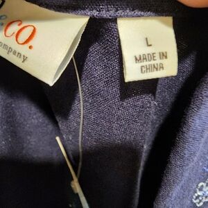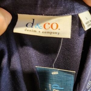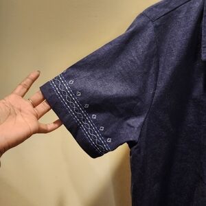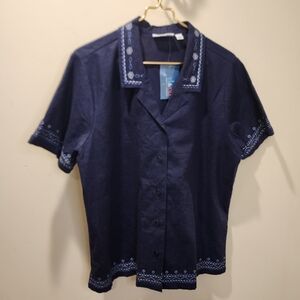 Denim & Company navy Linen blend short Sleeves button-down shirt size L
