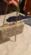 Stylish blue and tan clutch bag with an intricate design. Detachable chain & metal clasp closure.