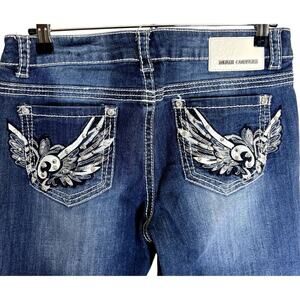 Denim Couture Jeans Women Size 31 Embellishments Zip & Button Closure Angel wing