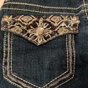 Shorts are in great condition and has a nice stretch to them. Some distress showing. Unfinished edge on shorts.