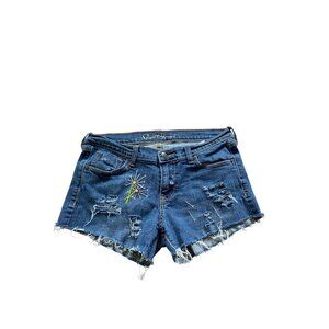 Denim Dandelion Embroidered Cut Off Shorts Blue Size 6 Upcycled Handmade Summer
