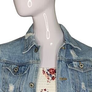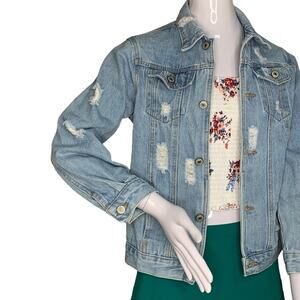 Denim Distressed Jacket Size S Light Blue Wash