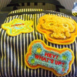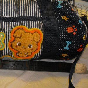 Large, cute denim canvas duffle with doggy theme. Clean with adjustable nylon strap and drop of 24". Lots of pockets. Nearly new. very durable. machine washable.