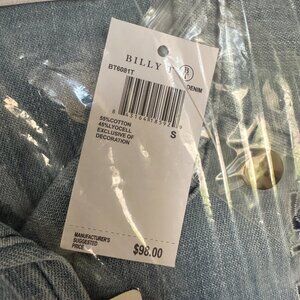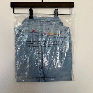 Billy T "To the Moon and Back" embroidered denim button up shirt.