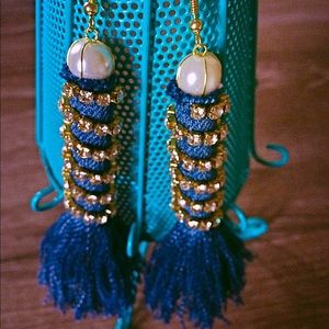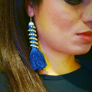 Crystal embedded Denim Tassel earrings ! Denim Fever . Rock anything with these on 🌟💫✨ Hand Made . Can be made in desired length , just leave the comment 😊