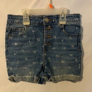 Stylish denim shorts featuring a subtle floral pattern. Perfect for casual outings.