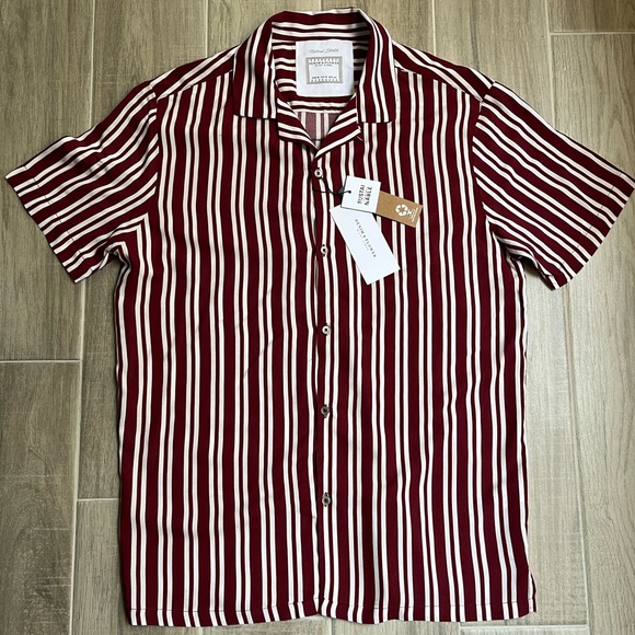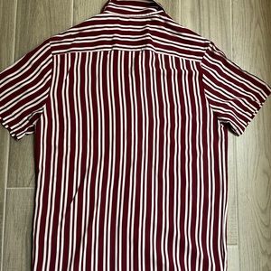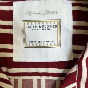 Denim & Flower Ricky Singh Men's Shirt, Slim Fit maroon and white stripes.