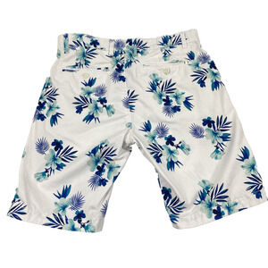 Denim & Flower Bermuda Shorts Men Size 30 White Blue Tropical Hawaiian 9" Inseam