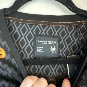 Denim & Flower | Black Patterned Jack o Lantern Print "Spooky" T-Shirt Medium