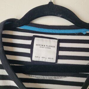 Denim & Flower Black and White Striped Blouse