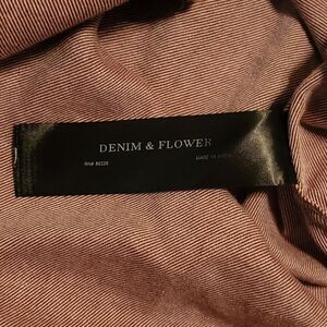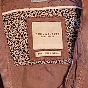 Denim Flower Button Front Shirt Mens Size L Red Short Sleeve Top