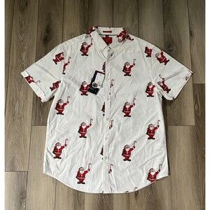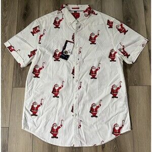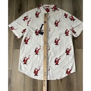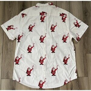 Denim Flower Button Up Shirt Mens L White Santa Claus Christmas Happy Holiday