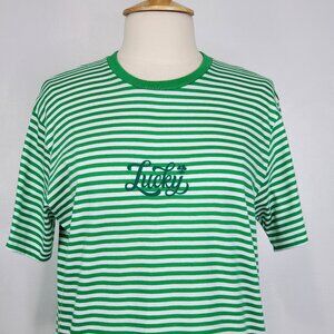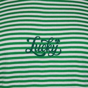 Denim & Flower Cotton Green White Striped "Lucky" St. Patrick's Day Top Size M