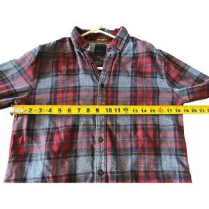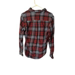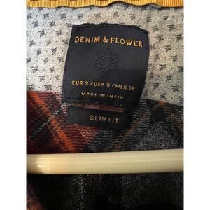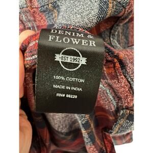 Denim Flower Flannel Shirt Mens Small Red Plaid Long Sleeve Button Up Slim