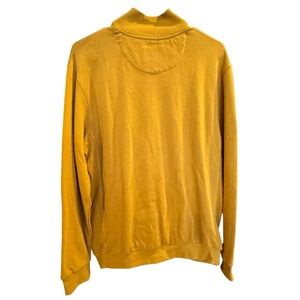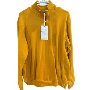 See measurements in photos. Experience the perfect blend of style and comfort with this gold zip-up sweater from Denim & Flower. Featuring a stand-up collar and a soft, plush texture, this sweater is ideal for keeping warm while looking effortlessly chic. Its relaxed fit ensures a comfortable wear for any casual outing.